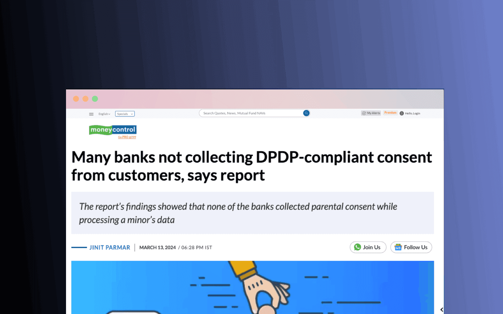 Press ReleaseMany banks not collecting DPDP-compliant consent from customersDate Published05/19/2025Home/Posts/Many banks not collecting DPDP-compliant consent from customers