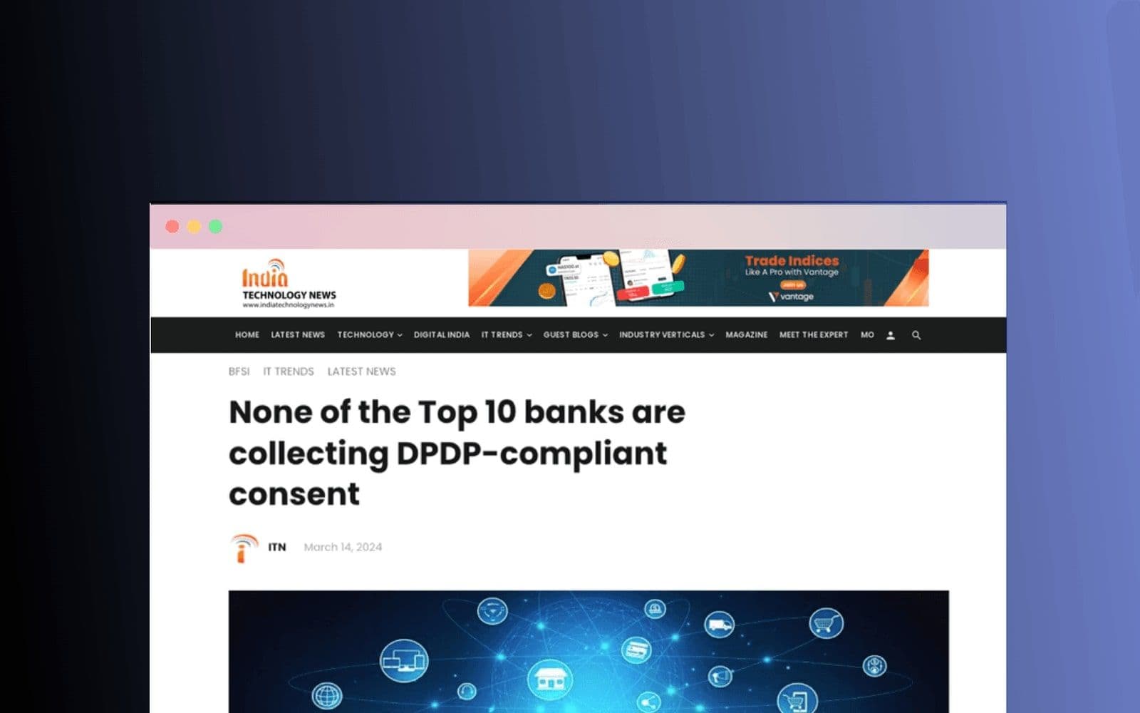Press ReleaseNone of the Top 10 banks are collecting DPDP-compliant consentDate Published05/18/2025Home/Posts/None of the Top 10 banks are collecting DPDP-compliant consent